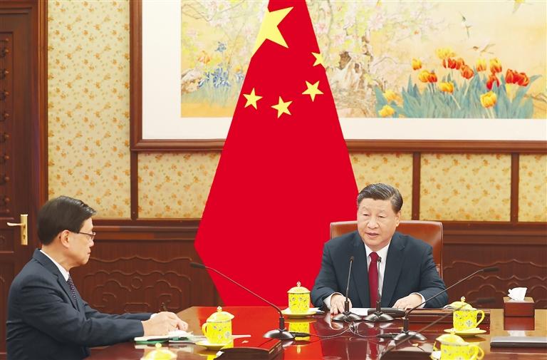 习近平强调,新时代新征程,我们正以中国式现代化全面推进强国建设、民族复兴伟业。中央全面准确、坚定不移贯彻“一国两制”方针长期不变,全面落实“爱国者治港”原则,全力支持行政长官和特别行政区政府团结带领社会各界,抓住国家发展带来的历史机遇,巩固提升香港国际金融中心、航运中心、贸易中心地位,推动香港实现更好发展,“一国两制”的生命力和优越性必将不断显现,我们对香港的光明前景充满信心!