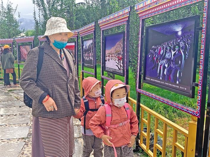 图为群众在宗角禄康公园内参观“西藏·70——庆祝西藏和平解放70周年影像展”。本报记者 杨小娟 摄