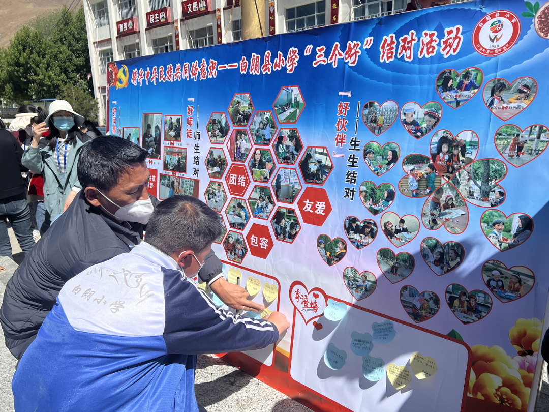 教职工结对“好同事”,采取“一对多”的形式,学校汉族教师与藏族教师之间结对子,努力做到“工作在一起、学习在一起、生活在一起、活动在一起”,达到平等、互惠、互助,相互离不开的“好同事”关系;师生结对“好师徒”,教师一对一精准帮扶,汉族教师帮扶藏族、回族学生,藏族教师帮扶汉族、回族学生,对学生的思想、学业、生活进行帮扶,让学生感受到不同民族教师带来的温暖,建立“好师徒”关系;学生结对“好伙伴”,开展汉族学生与少数民族学生结对子活动,形成在学习、生活和成长上成为真正的“好伙伴”,目前全校“好同事”汉族、藏族教师结对10对,“好师徒”汉族、藏族、回族、彝族师生结对17对,“好伙伴”汉族、藏族、回族学生结对23对。