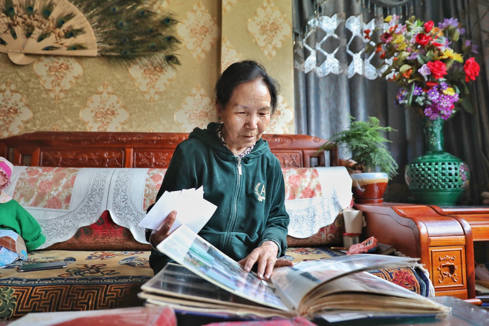 图为其美卓嘎在家中翻看老照片。记者 唐启胜 次仁片多 索朗琼珠 摄