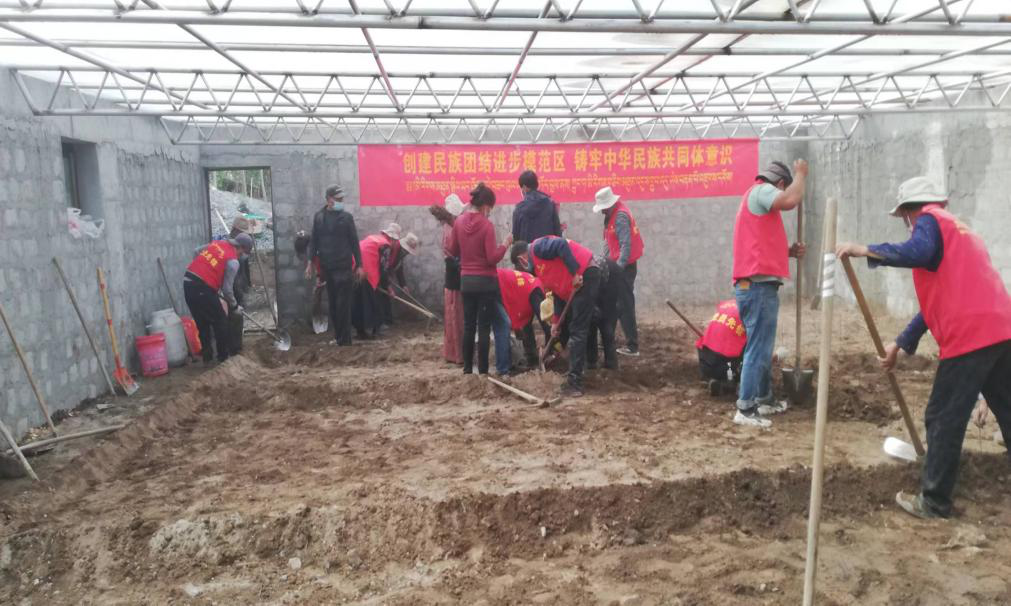 6月18日,朗县纪委监委、县委统战部、朗巴居委会3个党支部联合朗巴居委会新时代文明实践志愿服务队、驻村工作队等群体,在朗巴居委会的温室大棚共同种植红油香椿,以民族团结之花孕育生态发展之果。