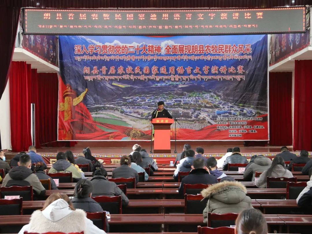 为深入学习贯彻党的二十大精神,全面展现新时代农牧民群众风采,12月4日下午,朗县成功举办首届农牧民国家通用语言文字演讲比赛。