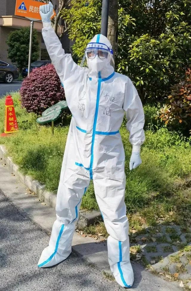 上海市民问他们背后写的什么?他们总是很自豪的说:“这是藏语”。他们给其他志愿者加油鼓劲:“西藏为上海援助了牦牛肉和矿泉水,这些物资满载着西藏人民的深情厚谊,相信在全国各省市的无私援助帮助下,我们一定能早日打赢疫情防控阻击战”。