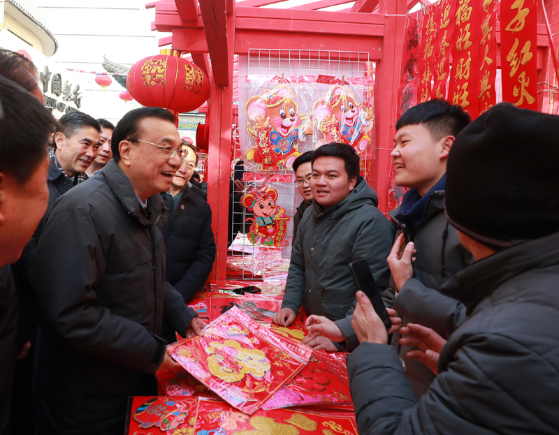 李克强1月21日来到地处高原高寒区的青海考察。正值农历腊月二十七,俗话说,“二十七、赶大集”。总理一下飞机来到西宁莫家街综合农贸市场,考察春节期间保供稳价及食品安全等情况。市场上熙熙攘攘,年味儿很浓。李克强先后逛了春联、肉类和枸杞等摊铺,一一了解市场供应和价格。在一处牛羊肉摊铺前,总理详细询问摊主价格多少、和去年相比涨了多少、与猪肉价格上涨是否有关、供应是否有保障等。摊主回答,牛羊肉价格和去年比涨了一些,目前供应充足,而且都是当天新鲜的肉。回答完总理的问题后,摊主突然问:“总理家年货备得怎么样?是不是差点我们青海的牛羊肉啊?”李克强乐了:“北京的供应也是有保障的!”紧接着,总理叮嘱随行人员,春节是千家万户团圆的日子,按照我们中国人的年俗,过年是要吃肉的,无论是猪肉还是牛羊肉,一定要保证供应充足,价格稳定。让老百姓吃得上肉,吃得起肉,过个好年。