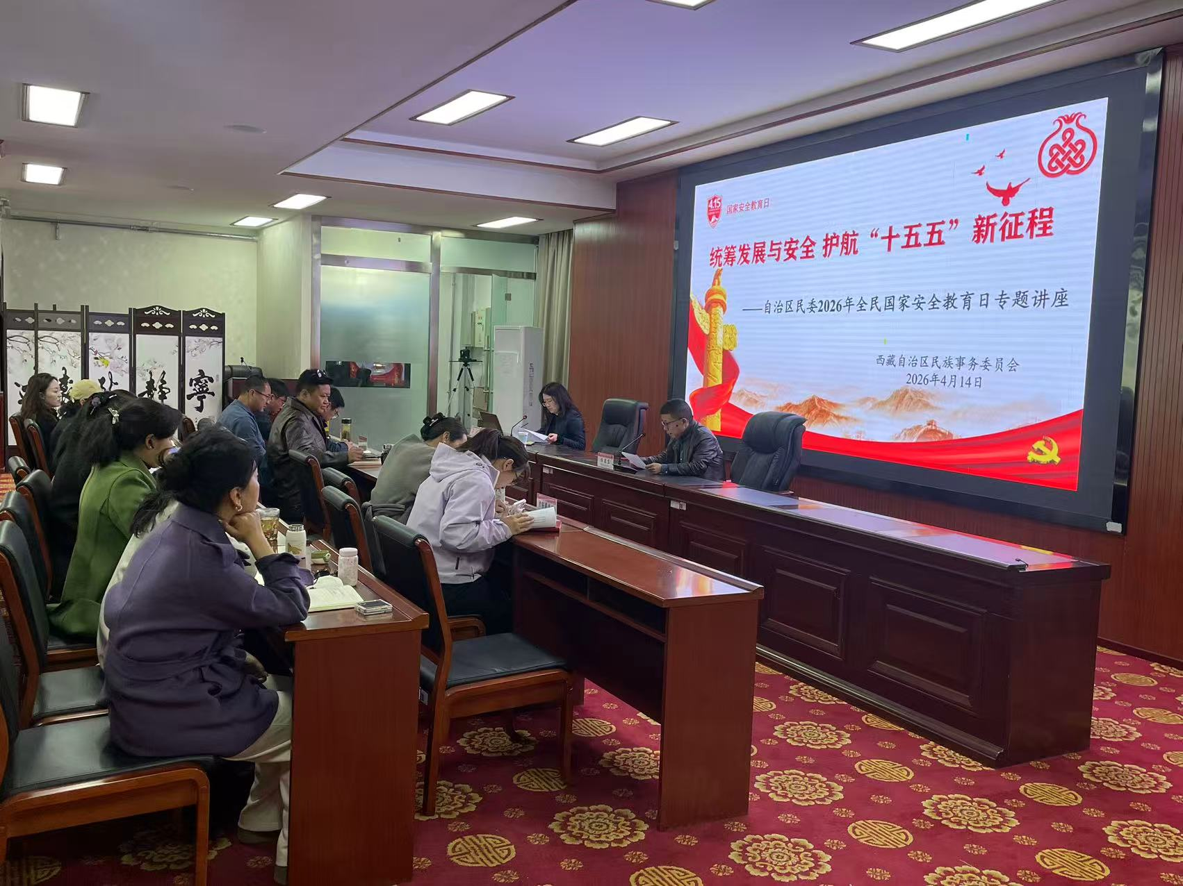 主题党日淬初心,双线讲座深化安全教育。区民委开展系列主题党日活动,分别邀请西藏出入境边防检查总站警长许超、西藏子产律师事务所律师蒋媛分别于4月13日、14日进行专题授课,通过《中印边境中西段斗争历史及形势》系统梳理了中印边境中西段历史与当前形势;通过《国家安全无小事 全民同心筑屏障》围绕总体国家安全观、宪法中国家安全规定和国家安全法与反间谍法等方面,结合国家安全相关典型案例,深入剖析当前国家安全面临的形势与挑战。讲座有效提升了自治区民委干部职工对总体国家安全观的理解,进一步强化了维护国家安全的责任感与使命感,增强了防范安全风险的意识和能力。