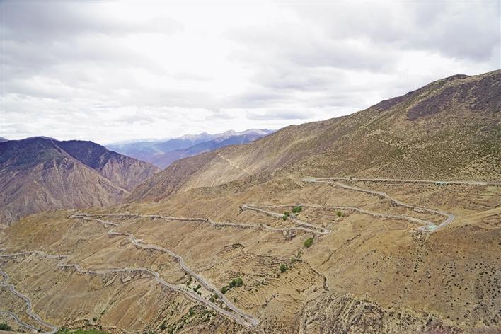 川藏线“天路72拐”,位于昌都市八宿县境内,从海拔4658米的业拉山顶到海拔2800米的嘎玛沟山谷,30公里路段落差达1800多米。因其坡陡、弯多而得此名。本报记者 旦增 摄