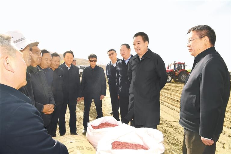 一年之计在于春,眼下,西藏各地春耕备耕有序开展。在扎囊县扎其乡孟卡荣村,农业机械在田间地头来回穿梭作业。“今年春播面积多少?主要种什么青稞品种?去年亩产怎么样?”王君正沿着田垄步入田间,仔细察看春耕备耕、青稞良种选育、农资储备情况,并向农户询问去年收成。他说,要坚持藏粮于地、藏粮于技,抢抓农时高质量开展春耕备耕,保障农资农机供应,加大农业科技投入力度,落实好强农惠农富农政策,充分调动农民群众种粮积极性,打好全年粮食生产第一仗。